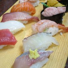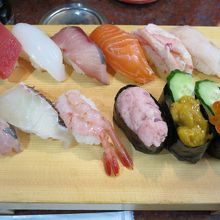 金沢の台所、近江市場の北側の端にある回転寿司のお店です。回転寿司と言っても寿司は注文でレーンを周っているのは魚の煮つけ等でした。金沢ではのどぐろの握りを食べたいと思っていたので、握りのセットを頼もうとしたところ、10貫セットにはのどぐろがなく、12貫セットを頼みました。荒汁がついて2800円位です。ネタも新鮮で食べ応え充分です。あとで調べたらのどぐろのお重が有名だったので、しまったと思いました。