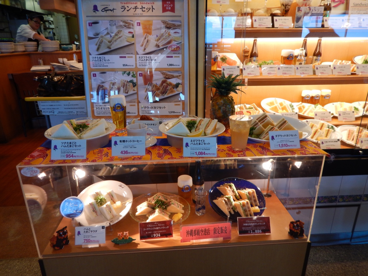 那覇空港4階のレストラン街にあります。飲み物の付いたランチセットなどもありましたが、沖縄限定メニューで、ゴーヤーのたまご焼きをサンドしたゴーヤーチャンプルー風サンドというのがあったので、テイクアウトして機内で食べる事にしました。どこかで食べたゴーヤーバーガーより美味しかったです。値段は高めですが、それだけの価値はあったと思います。