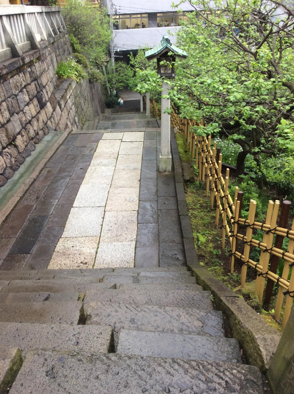神田明神の社務所の裏を進んでいき、突き当たりを左の方に下る石段の綺麗な坂です。ちょうど、明神男坂に比べると緩やかで、途中にはの踊場がありますので人休みも可能です。神田明神にお参りに来た際にはぜひご確認ください。