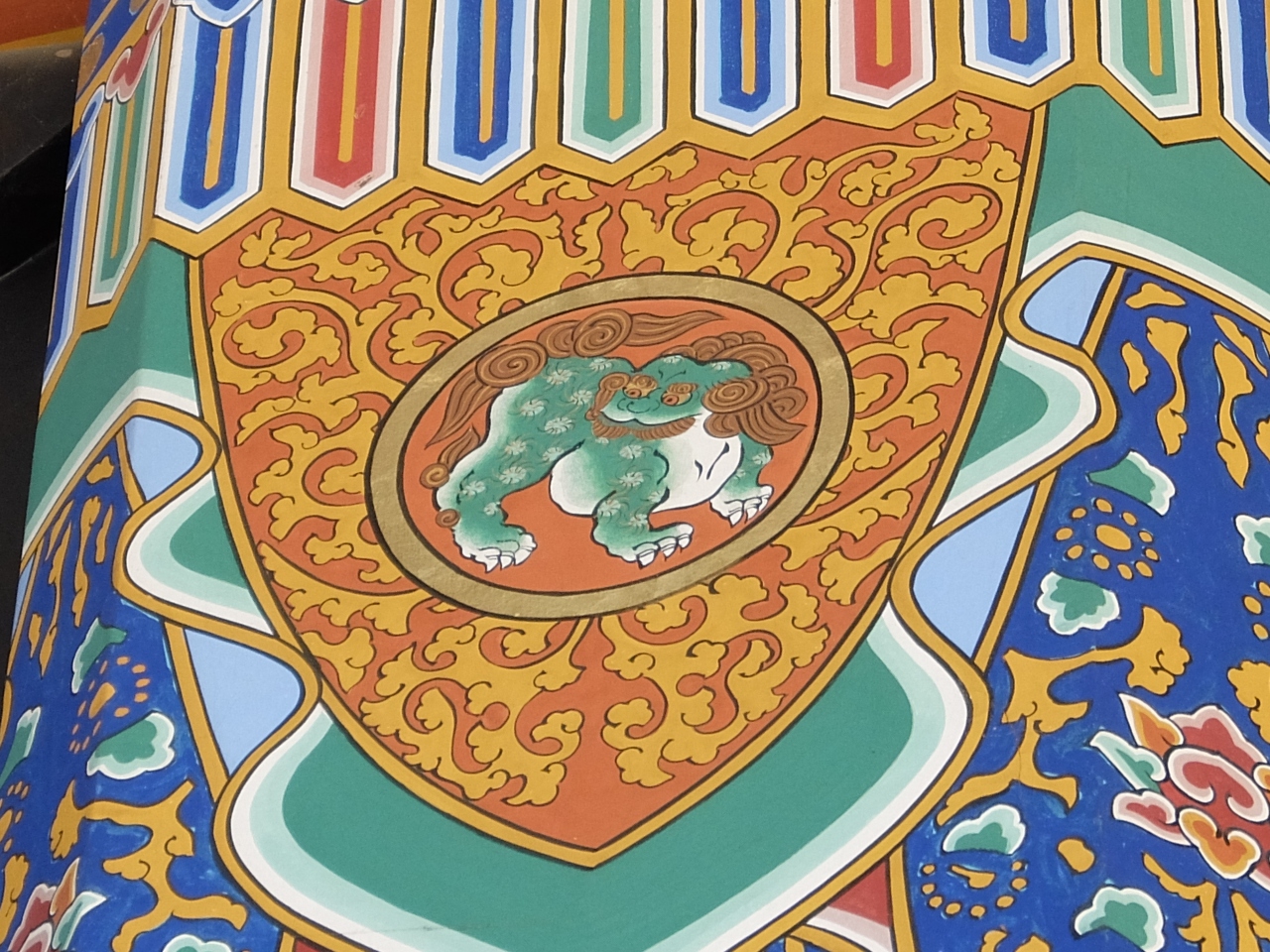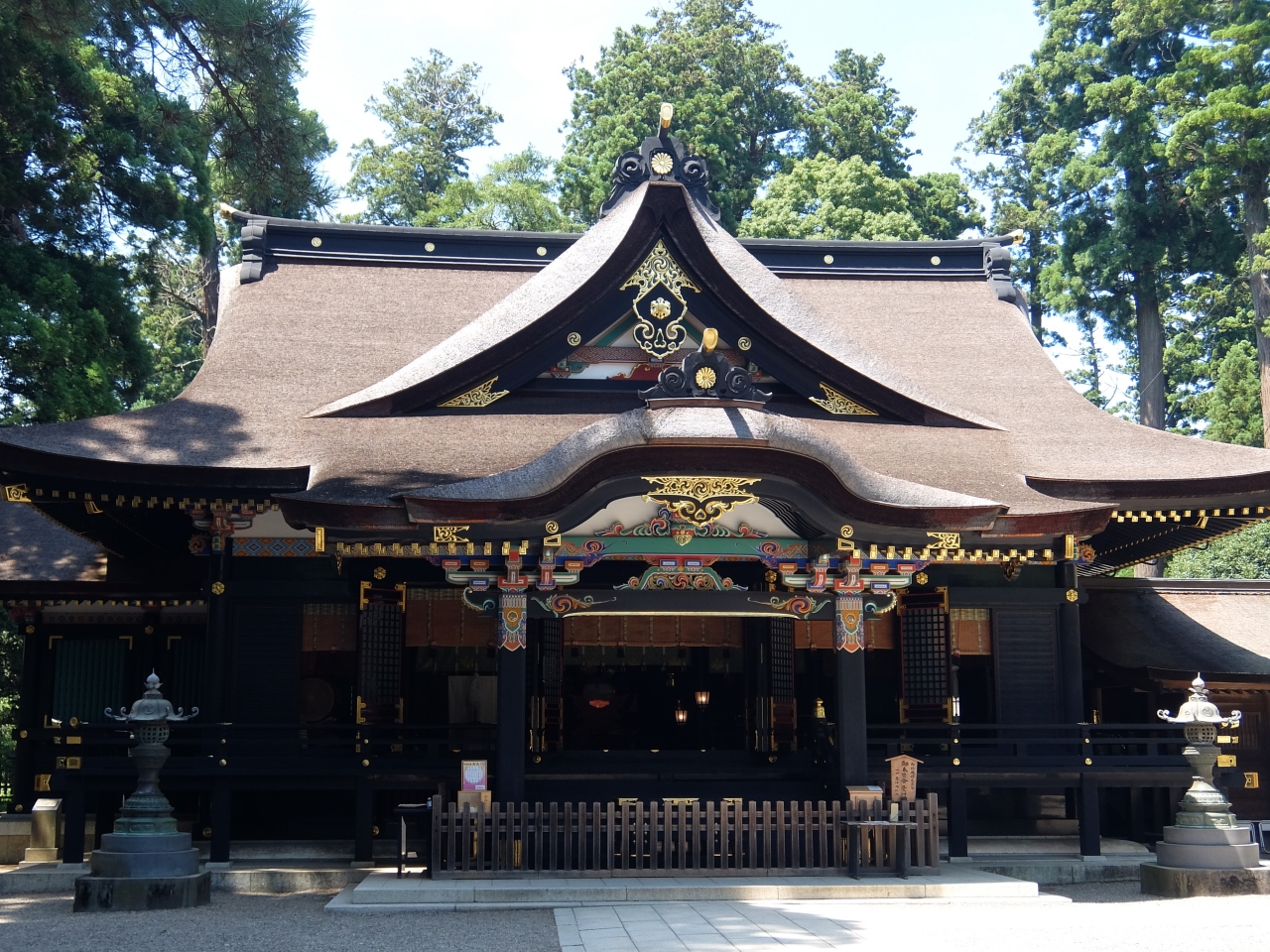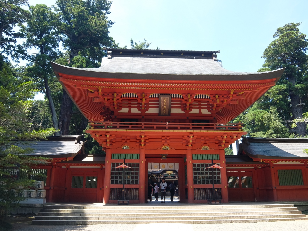 朱塗りの大鳥居から拝殿まで結構歩きます。やがて朱塗りの楼門をくぐると拝殿が目の前に現れます。楼門も立派な建築物ですが,拝殿を見た瞬間「きれい」と言いたくなります。それほど,たたずまいが美しく,色鮮やかに装飾されています。まさしく一見の価値ありです。