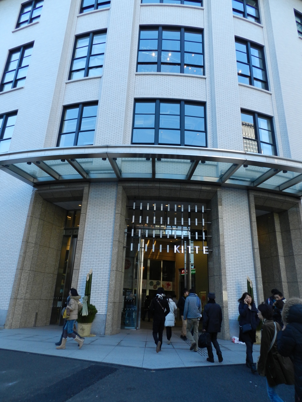 東京駅・丸の内南口を出てすぐのところに5階建ての白っぽいビルがあり、それが『KITTE』の建物です。