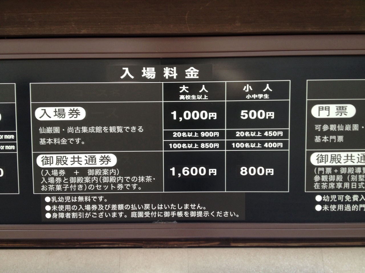 入場料は大人千円、子供500円、駐車場300円となります。これで仙巌園、尚古集成館の両施設に入れます。幕末期の遺構の鉄の精錬をする反射炉跡、江戸初期の島津藩から維持された立派な木々、庭園、池や建物などさすがお殿様のお庭の雰囲気たっぷりでした。集成館へ移動すると島津藩の宝物が展示されていて興味ある方は本物の品々に食い入るように見学できます。休憩施設も園内多く年配の方同伴でも安心して訪問できます。