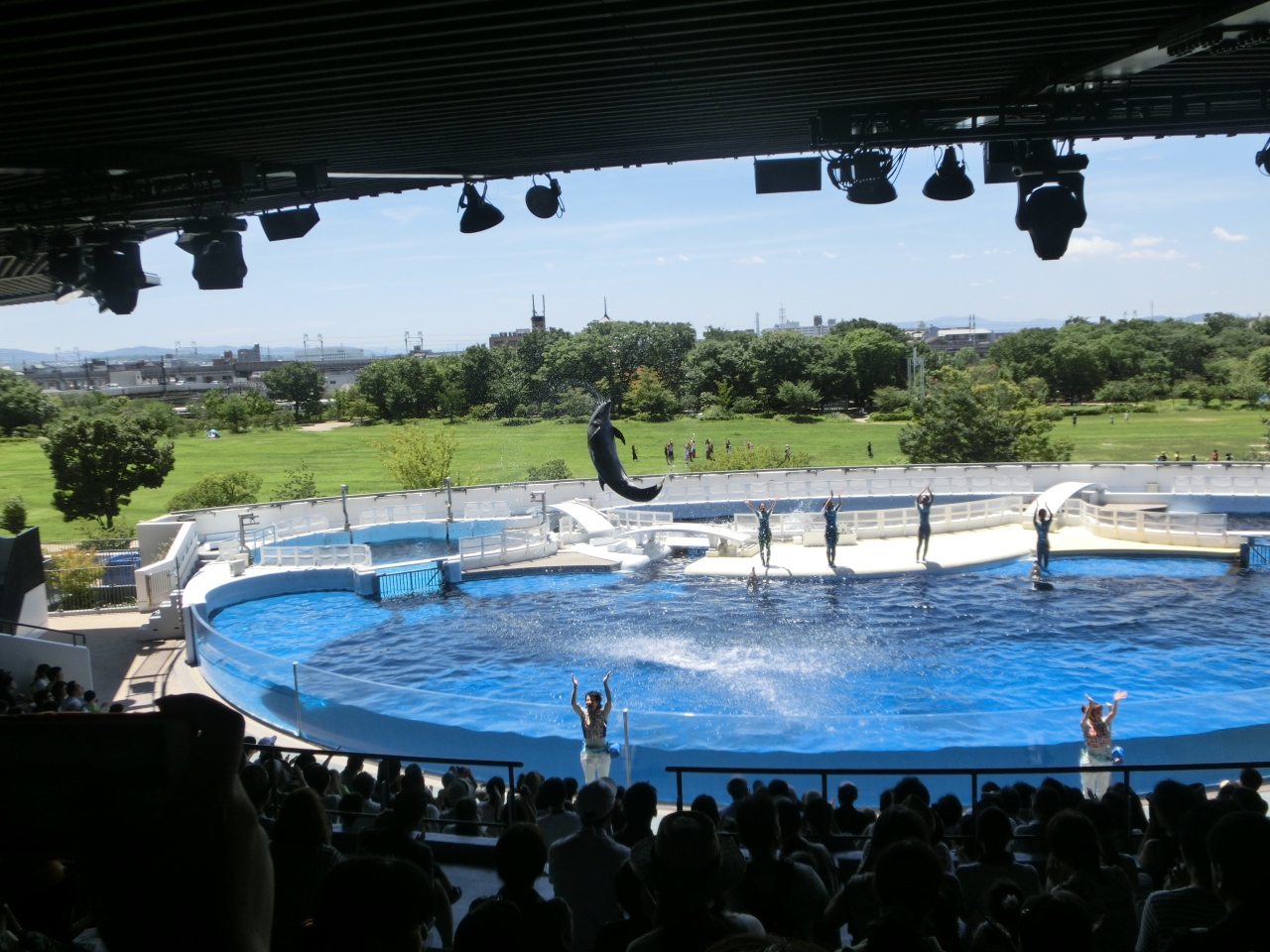 施設内のイルカプールも、広さがない分、ジャンプなどの芸は少なく、観客と一緒に盛り上げる演出などがありました。