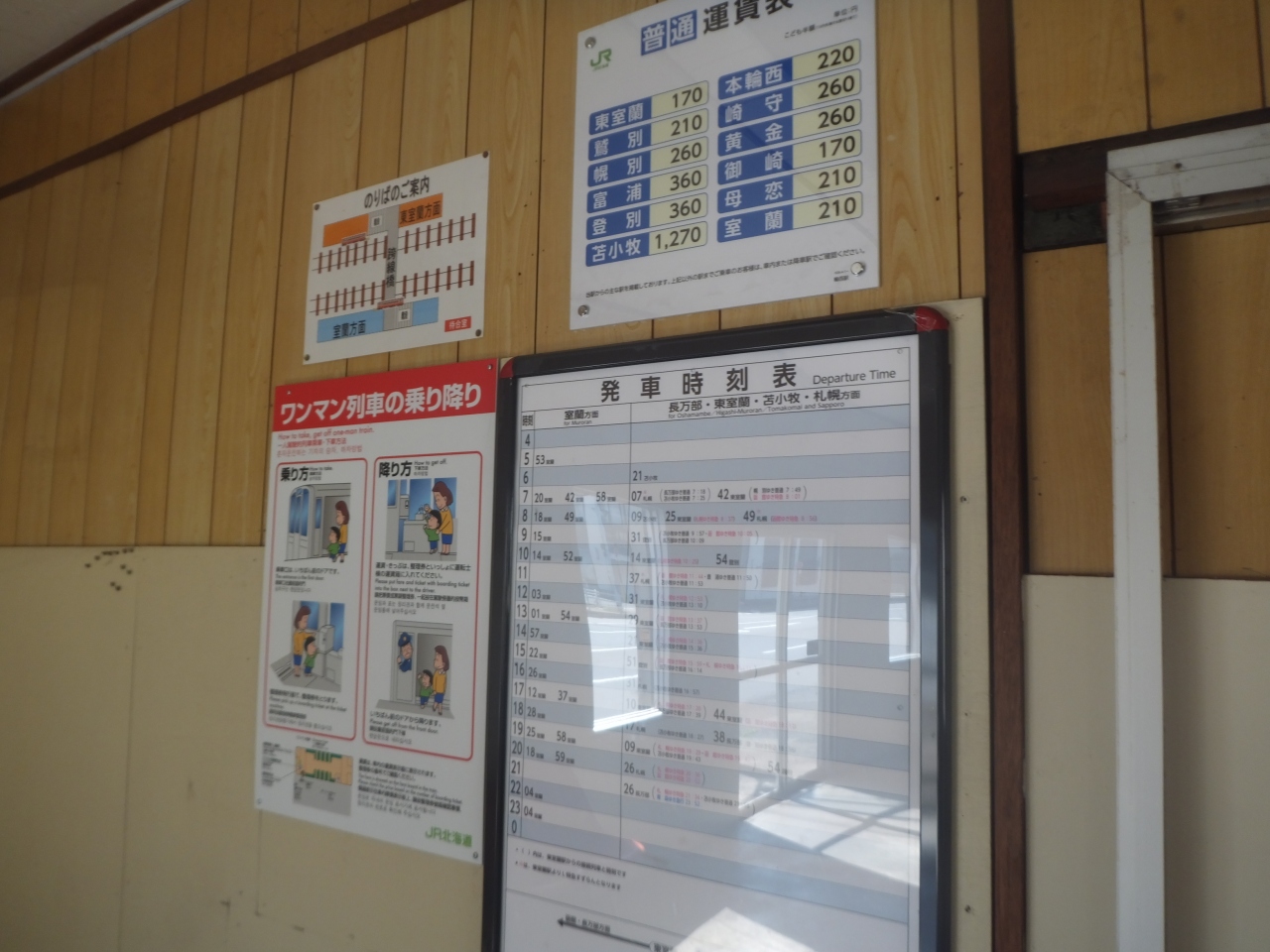 駅は室蘭支線が複線のため、複線の駅で、ホームは室蘭方面が駅舎側、東室蘭方面は跨線橋を渡った方にあります。