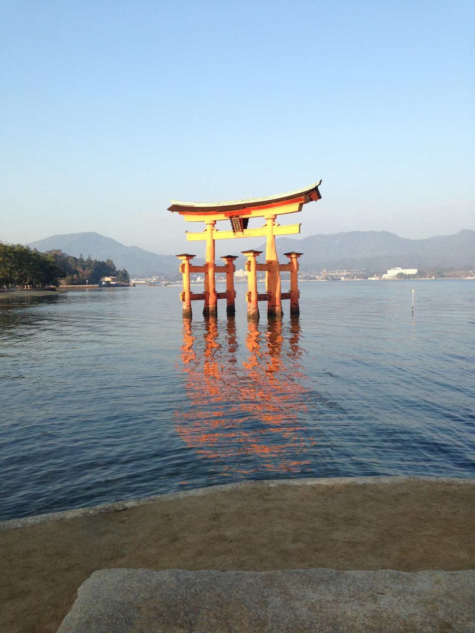 フェリーで渡って、お土産屋さんや、鹿を眺めながら神社に行きます。休日は非常に混み合っています。予め潮の満ち引きの時間を調べていくと、歩いて鳥居の下までいけます。潮の満ち引きでかなり風景が変わっててびっくりでした。