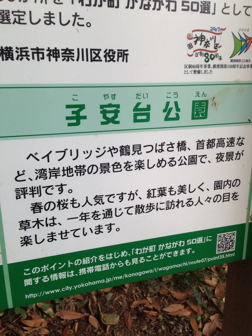 京浜急行の生麦駅or京急新子安駅から歩いて10分くらいかかるところにある公園です。高台にあるので、写真のように、見晴らしがよいのです。もちろん、暗くなれば夜景も遠目に観賞できます。夜景のスポットとして、あまり知られていない公園です。