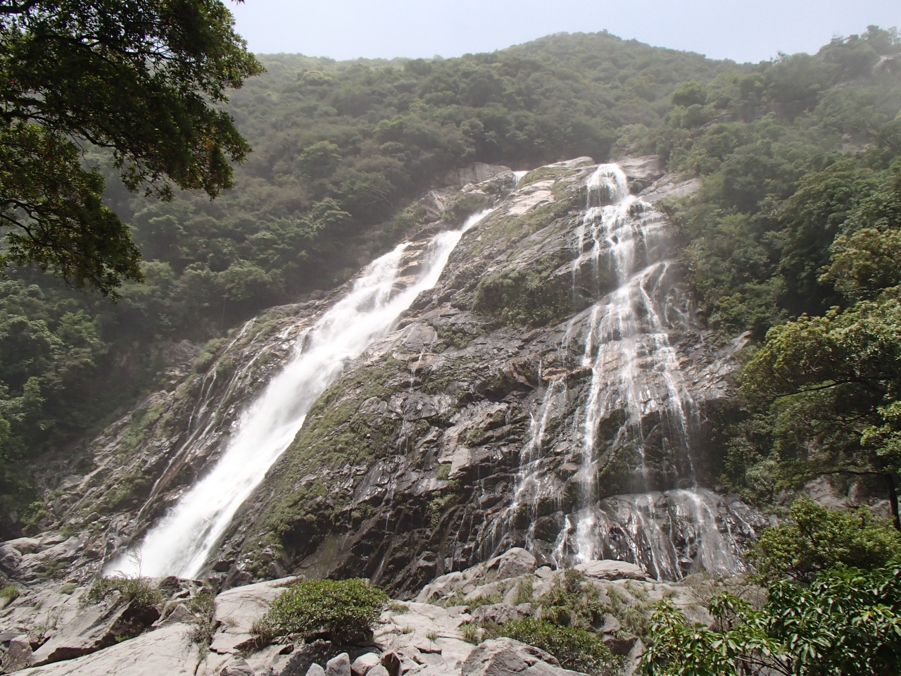 屋久島一周ドライブで立ち寄りました。ちょうど噴火があった直後で、灰がパラパラと降っていて他に観光客はいませんでした。近くからみられる、落差88メートルの大きな滝です。雄大な滝に水しぶきとマイナスイオンで癒されました。