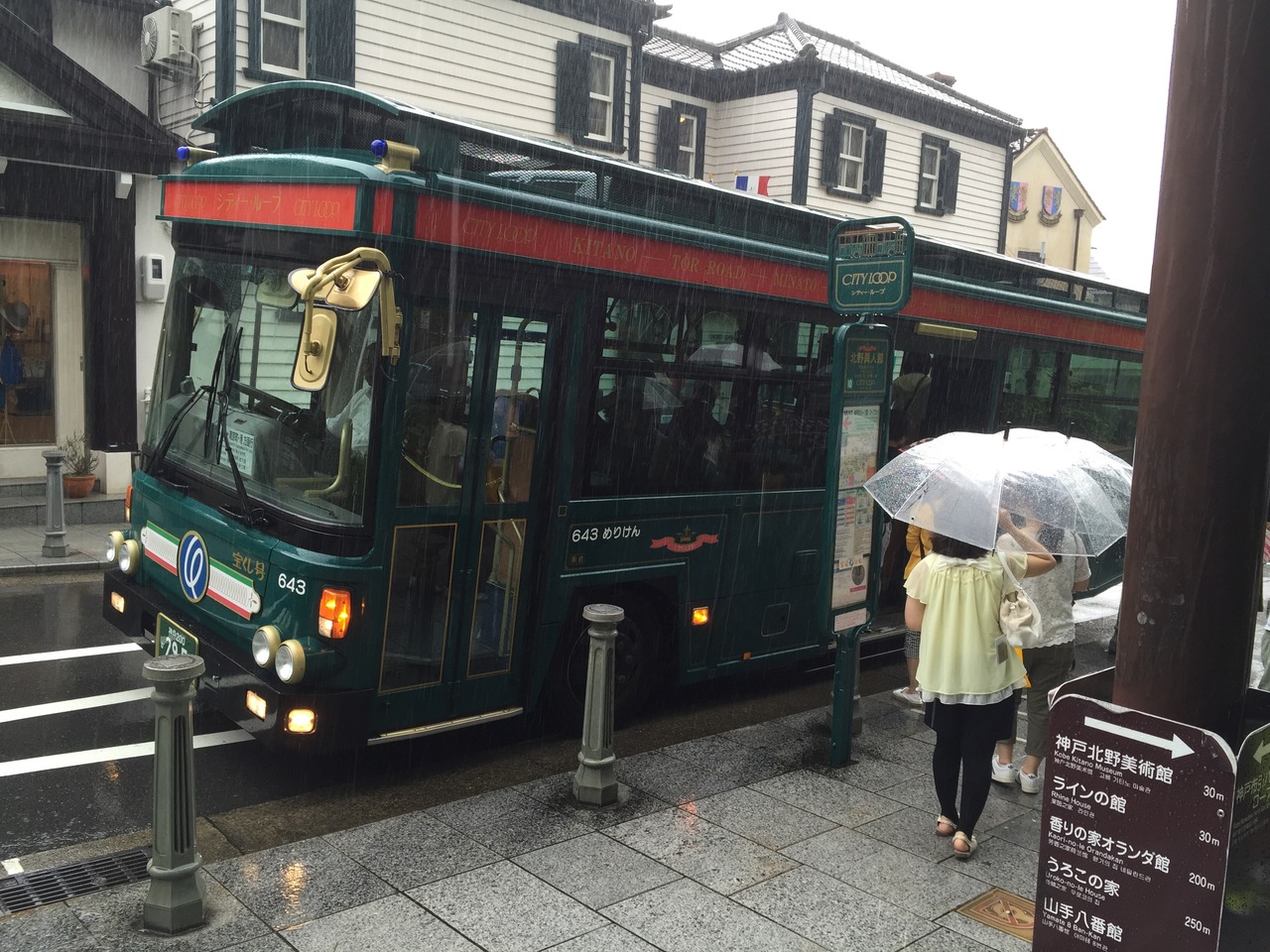 三宮から山側へと徒歩5分程で坂の入り口へと到着します。ここから異人館までの道中にカフェや雑貨やお土産店が並びます。少々きつい坂と思われたらグリーン色がおしゃれなシティループという660円で一日乗り放題の周遊バスもあるので利用するといいと思います。