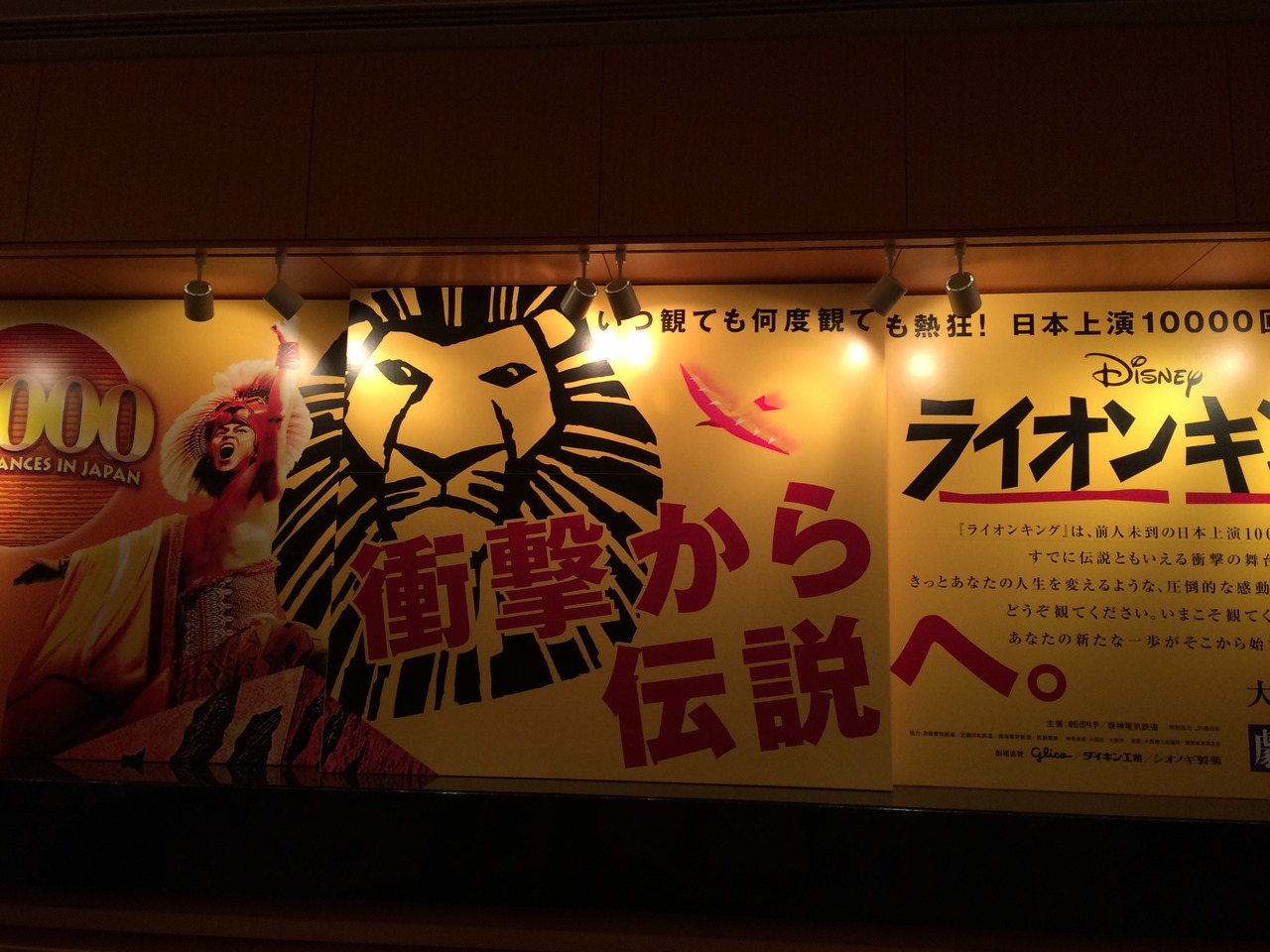 日本での上演10000回を達成したライオンキングを鑑賞しに行きました。この大阪四季劇場があるのはハービスプラザという施設の7階で、大阪駅からは地下街を通ってすぐです。2階席でしたが意外と舞台が近く、問題なく鑑賞することができました。舞台はさすが10000回も上演されるだけあって、とても感動します。演出などもすばらしく、ティモンとプンバが関西弁で喋っていたのもおもしろかったです。