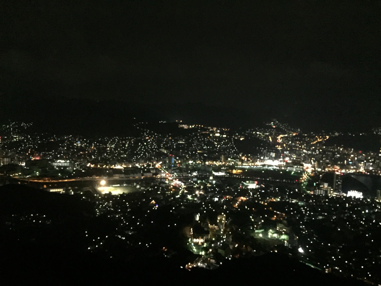 世界新三大夜景ということで、訪れなければ!、ということで、タクシーで往復しました。タクシーが一番楽に行ける方法だと思います。展望台はエレベーターで上がり、市内の夜景が綺麗に見えます。夜景の光が遠く、こんなもんか、という感じでした。