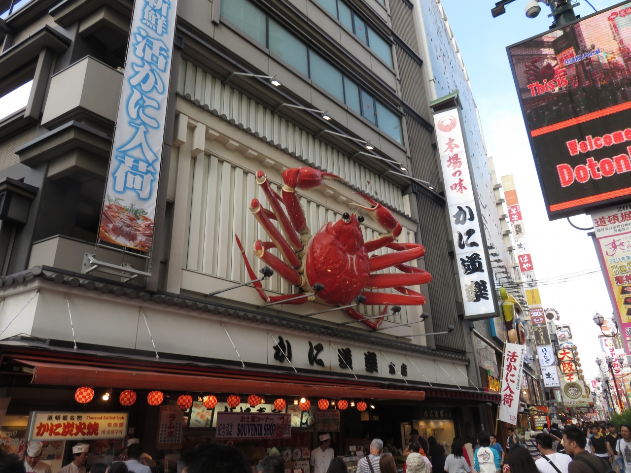 巨大なカニのオブジェが存在感抜群で大阪らしさの象徴の一つです。