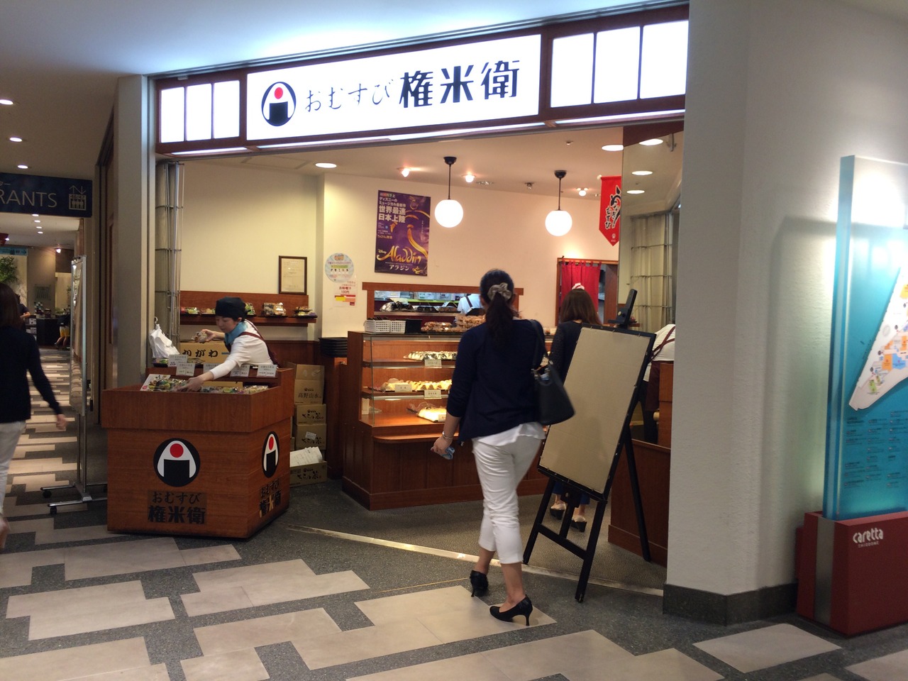 カレッタ汐留にあるおむすび専門店。テイクアウト中心ですが、お店の中にイートインスペースもあります。
