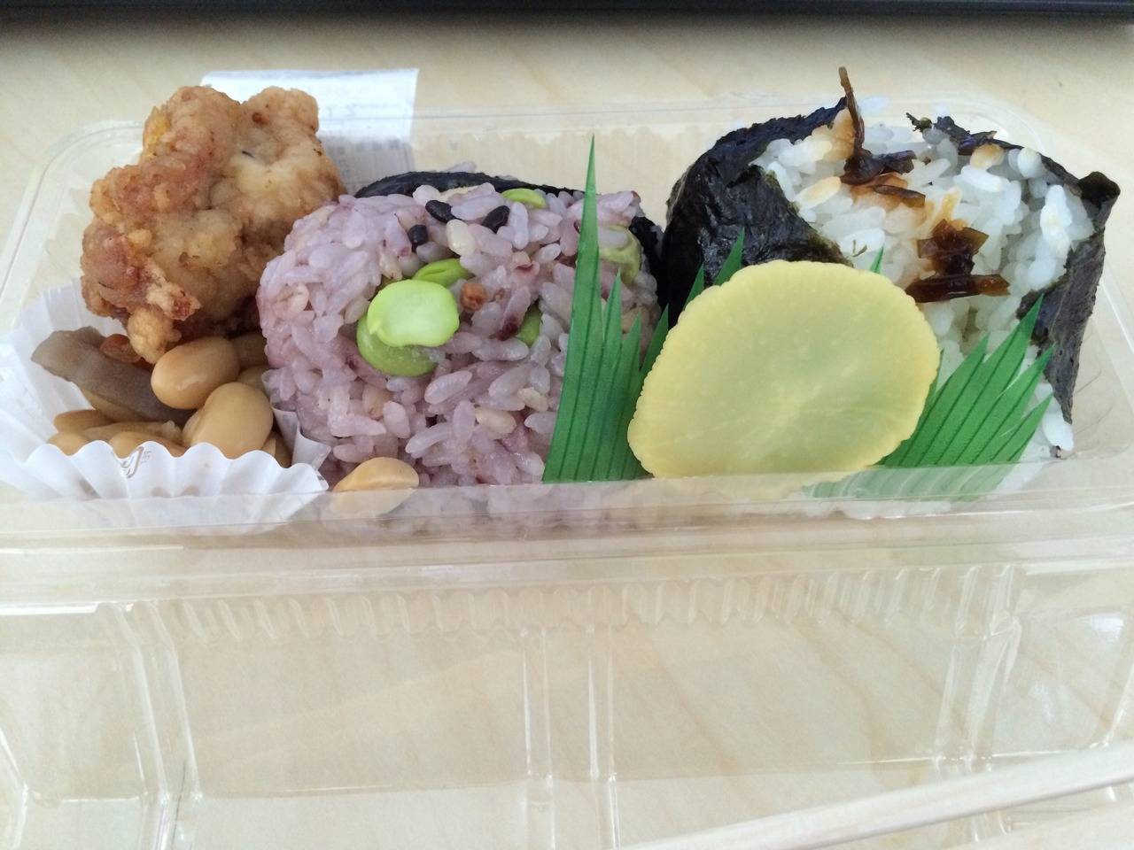 おむすびはおおぶりなので女性なら2つでお腹いっぱいになります。