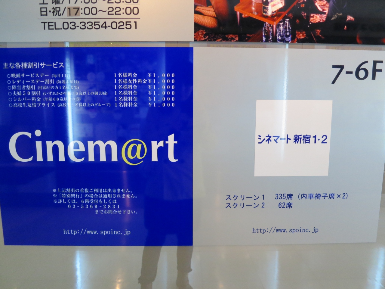 明治通り沿い、伊勢丹のはす向かいにある新宿文化ビルの6・7Fにあるミニシアター系映画館です(同じビルの4・5Fには角川シネマ新宿があります)。シネマートデイ(毎月25日・¥1000で映画が見られます)に「サイの季節」を見に行きました。スクリーン1(335席)とスクリーン2(62席)のみの小さな映画館ですが、きれいで、見た映画もよくてよかったです。