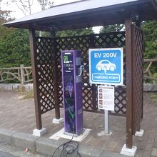 駐車場に電気自動車のチャージングスポット映画ヱヴァンゲリヲン新劇場版に登場するキャラクターをモチーフにした充電スタンドエルシーヴ、初号機があります。