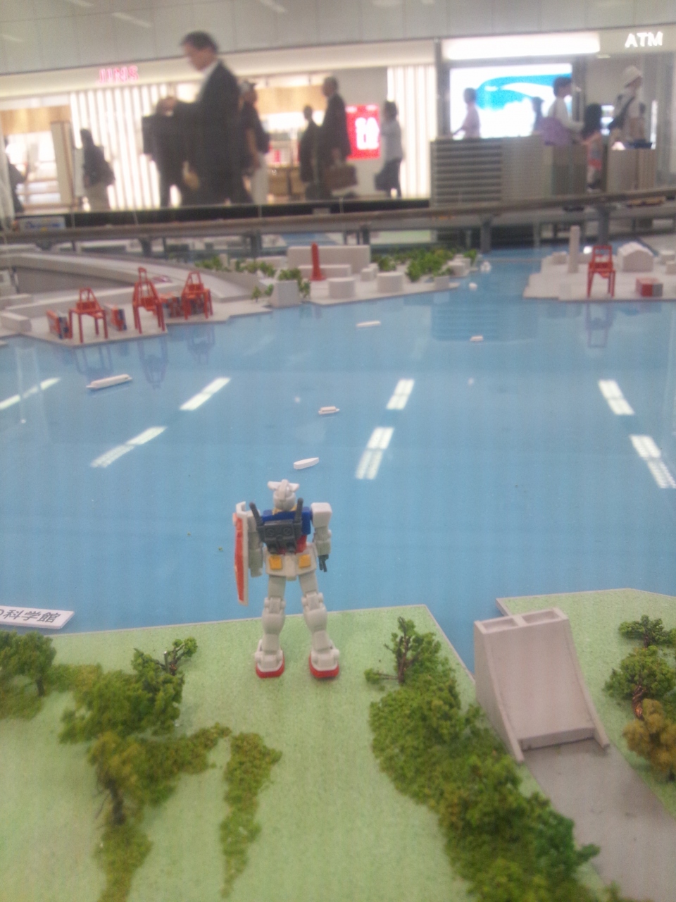 羽田空港三駅と浜松町にしか停まらないモノレールの快速が早い。ただ、空港から東京方面へはJAL側の空港第1ビルだと、ANA側の第2ビルの次の停車駅になってしまうため、座りたいときには京急を選ぶのが定石。改札付近に2000年台半ば現在の羽田空港がミニチュアで再現されている。国際線はなく、お台場のガンダムの場所は今とは違う。