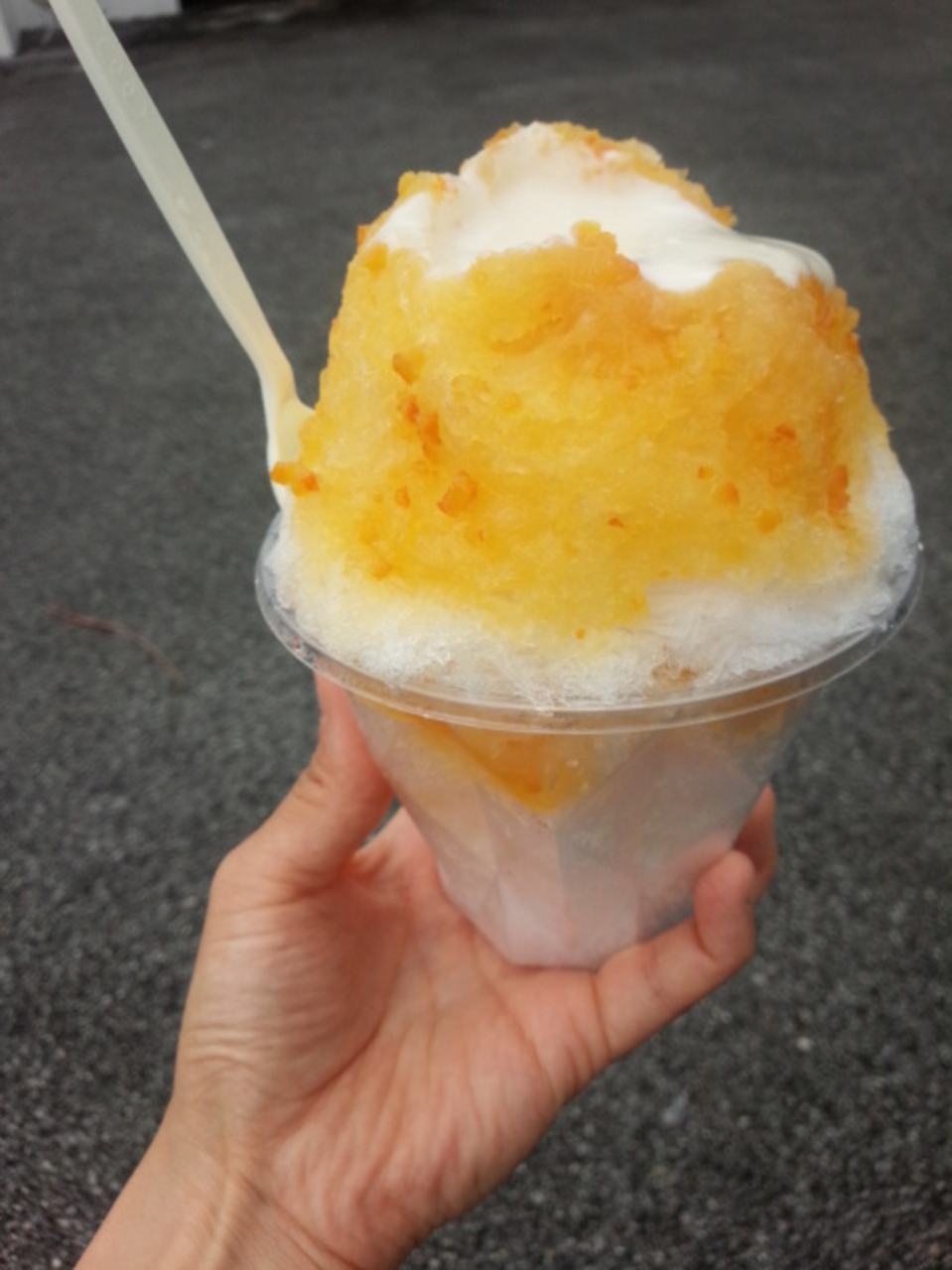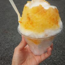 わたしはたんかんソースのかき氷を食べました。たんかんのピールが入ったソースが甘酸っぱくておいしかったです。かき氷の氷もふわふわでした。