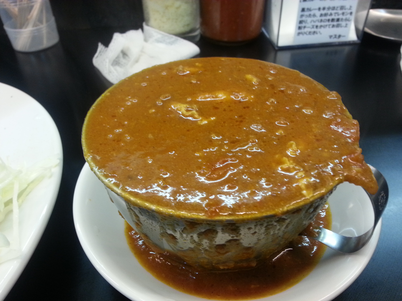お店のネーミングがなんとも特徴的でおデブタレントの石塚英彦を思い起こさせますが、カレー自体はインド、スリランカカレーに日本的なアレンジを加えた本格的なものでした。お行儀が悪いですがルーと3種のトッピングとサフランライスを混ぜ混ぜして食べる方が美味しい気がします。
