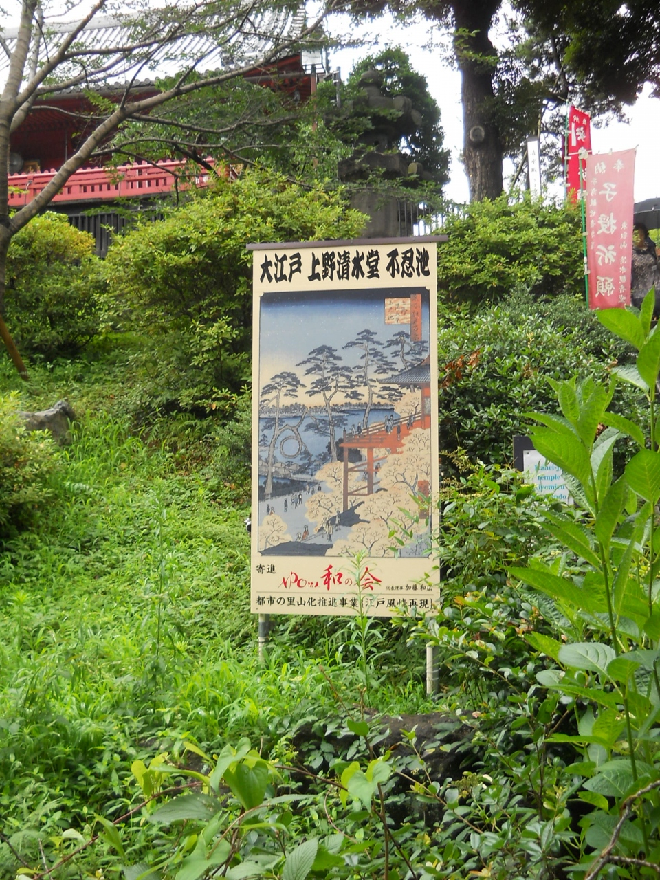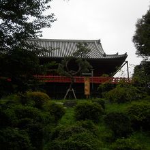 しのばず池方向から見上げると観音堂の前に