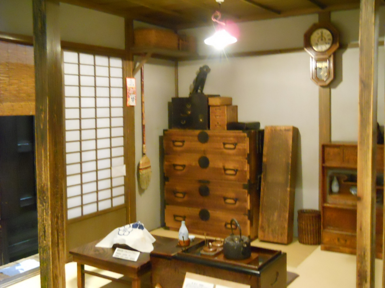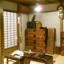 大正時代の下町の家を再現した展示では靴を脱いで上がり、