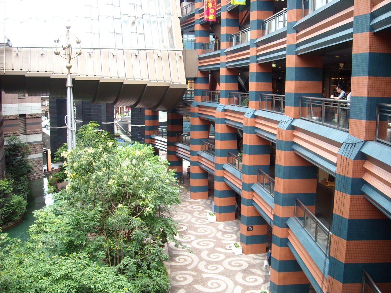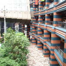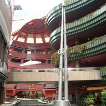 建物自体が現代アートです。外から見るのも良いけれど、中に入って広場を見下ろしたり、地下一階の運河沿いを歩くのもまた楽し。センターウォーク5Fのラーメンスタジアムは各店舗入り口前の券売機で食券を購入してからお店に入る方式です。