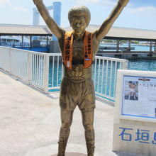 石垣港離島ターミナルの、桟橋側に鎮座する具志堅用高像。