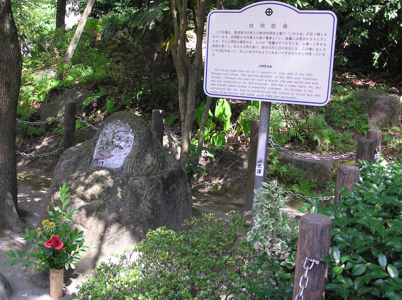 鹿児島市立美術館の、西郷隆盛像の後ろに「持明院様(じめさあ)」と呼ばれる石像がある。島津家久夫人亀寿のことで、容姿には恵まれなかったが優しい人柄で親しまれたと言われる。1954年以来、命日の10月5日には市が石像に化粧直しする。