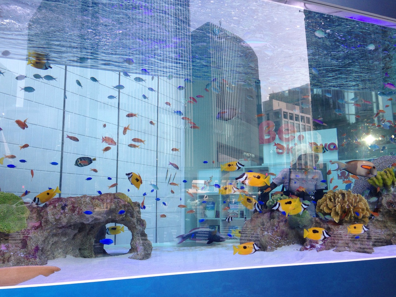 この日は正面玄関に大きな水槽があり 魚たちがお出迎え、館内にも水槽があり気持涼しくなります。