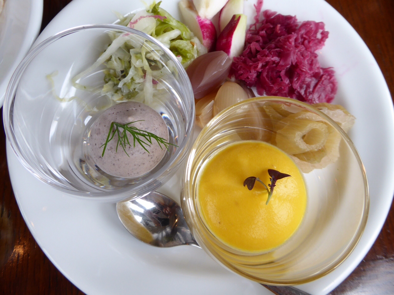 ハンガリーのシェフをチーフに迎えての料理は、野菜に関しては可能な限り地元十勝産のものを使った上で、素材を生かした調理がなされており、また豚肉は同国のマンガリッツァ豚を用いていて、そのどれもが美味しく、特に個人的にはピクルスやザワークラウトなどがとても良かった。