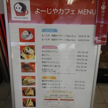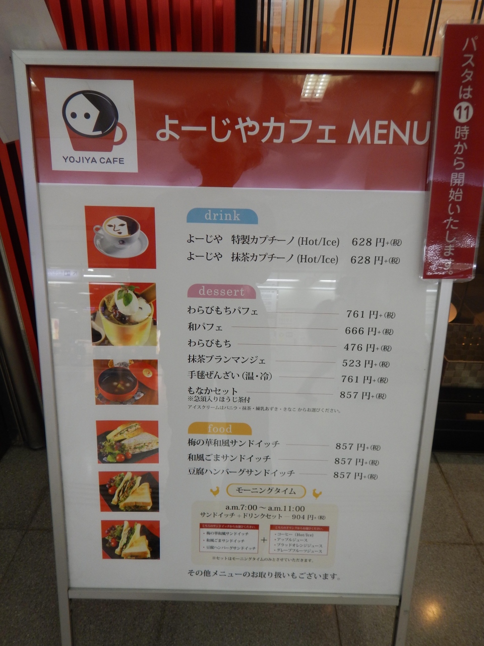 羽田空港旅客第一ターミナル地下一階にあります。モノレールの改札口を出たところの正面です。"よーじや"というと、独特な女性の横顔が描かれたあぶらとり紙で有名ですが、その顔のラテアートの飲み物があるようなので行ってみました。ラテアートの飲み物は628円+税金なので、ちょっと高いなぁと感じました。11時までのモーニングタイムが、少しだけお得です。