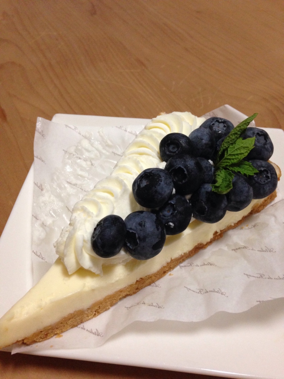毎月1日には季節のチーズケーキが安く販売されています。8月はブルーベリーがたっぷり乗った生チーズケーキで量もたっぷりめで美味しかったです。