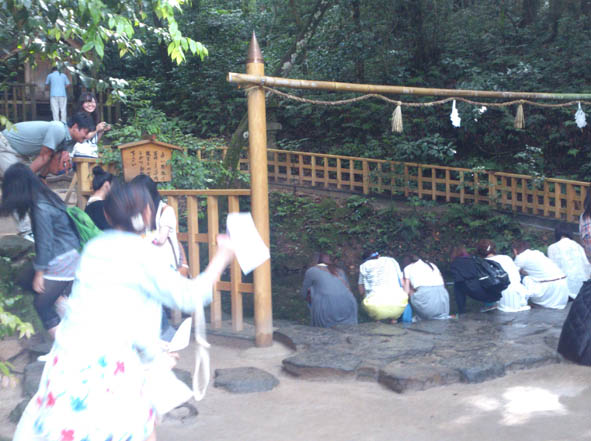 市内からのバスの乗り方が分からず地元の方に聞きながら到着。終点の八重垣神社は女子旅グループでかなりにぎわっていました。縁結びの定番スポットなので男子は私一人でした。やはり定番のおみくじと池での占いをする為に池の周りはひとだかりでした。