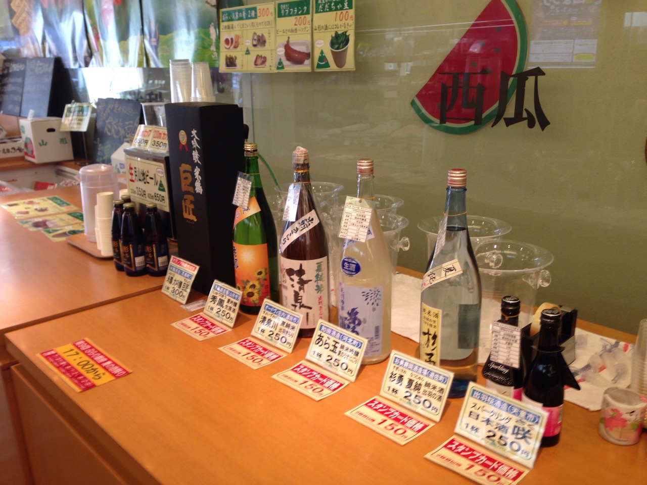 入口を入ると地酒や地ビールを頂けるコーナーがあります。ジュースを飲んだ直後だったので 遠慮しましたが今度は是非頂きたい。