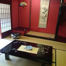 2階は昔の茶屋跡で、紅色の壁の座敷と、4畳半の茶室が見学できます。