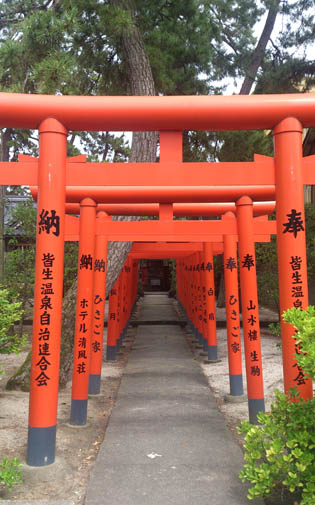 旅館や民家に隠れてしまうほどの小さな神社でした。夜に行ったら見つからないかも知れません。
