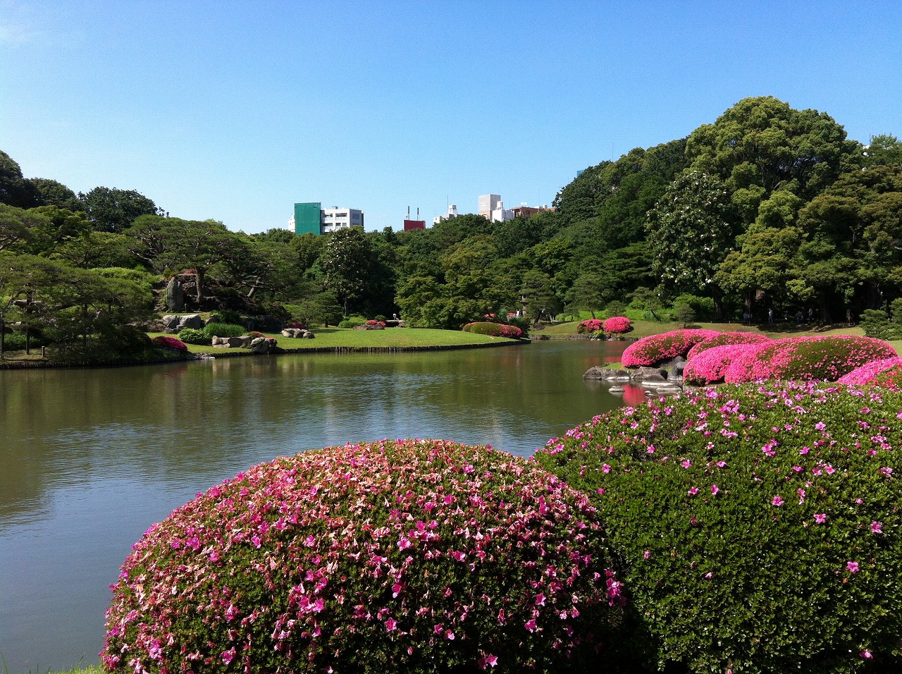 日本庭園が観たいというアメリカ人を案内しました。桜はない季節でしたが、とても喜んでもらえました。少し高台に登ると、日陰にベンチがあり、とても涼しく休むことができます。東京の真ん中とは思えない静けさを味わえます。