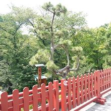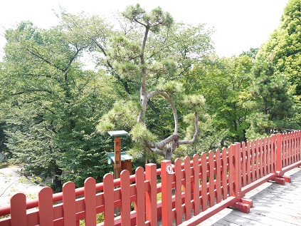 月の松は歌川広重が描いた「名所江戸百景」の中に「上野山内月の松」と言う絵が有りますが、その絵は円形の松の向こうに本郷の町並みと中島弁財天を描いた物です。当時も清水観音堂から不忍池に降りる階段近くに有ったそうです。