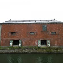 小樽運河の中心、赤煉瓦の壁は目立っています。