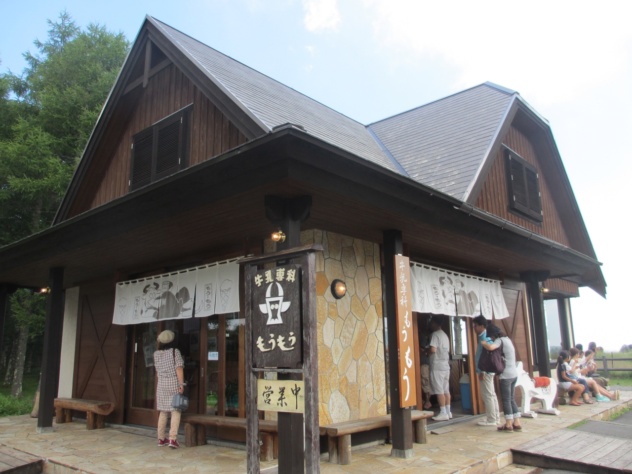 蓼科第2牧場にある可愛い構えの売店です。苦みのあるコーヒ牛乳の中に甘めのアイスクリームを入れたコーヒーフロート、牛乳たっぷりのソフトクリーム、濃厚で新鮮な牛乳、焼き立ての自家製パンなどを販売しています。店に中から牛馬を見ながら食べるもよし、柵の外で風に吹かれて食べるもよし。時には観光バスも寄って行きます。自家製パンが売り切れることもしばしばですが、次々に焼いているので、ちょっと待てば手に入ります。