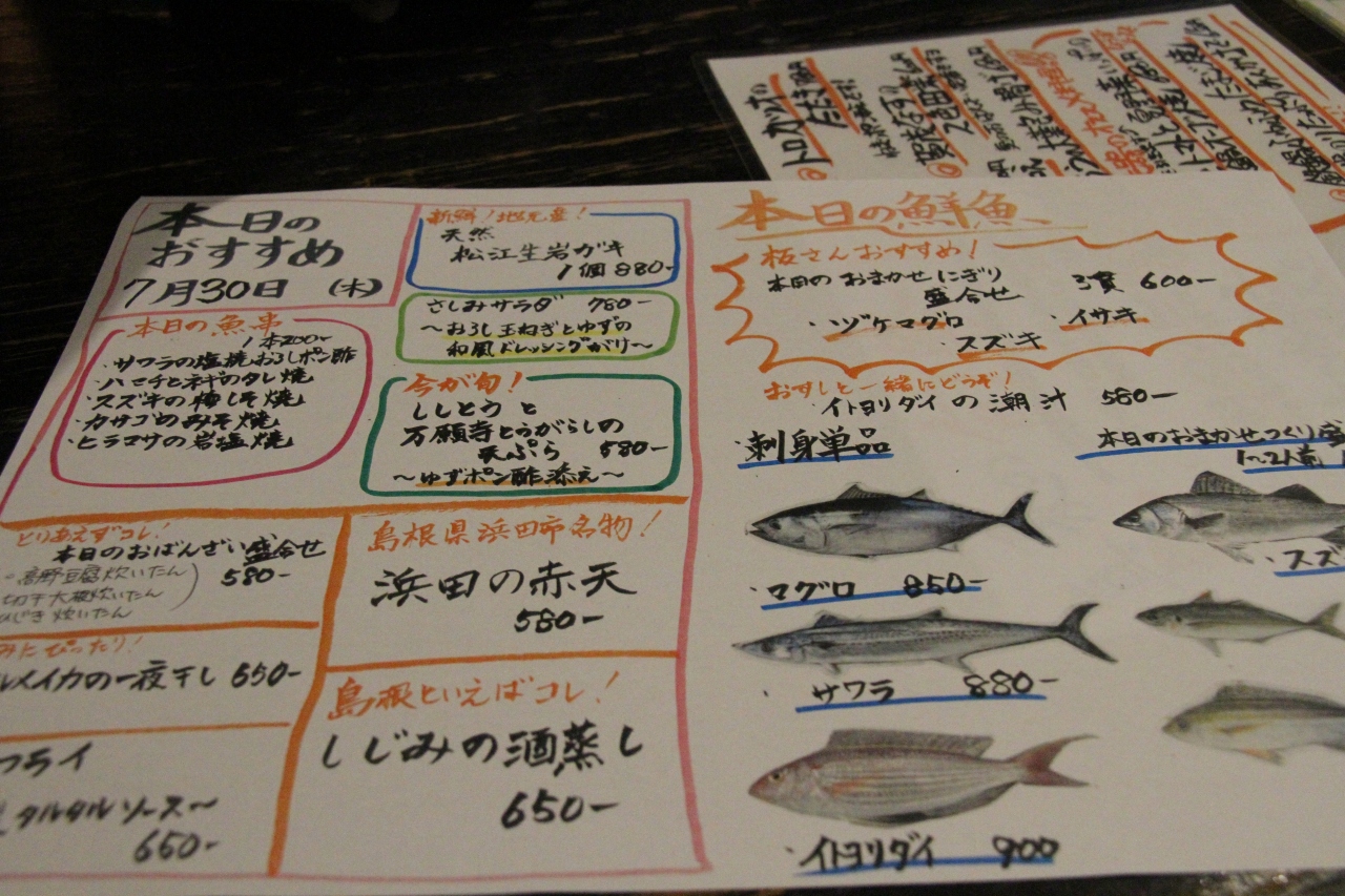 松江市内の居酒屋の生中の価格が大阪に比べて高いことが気になっていたので、今日は「2杯だけにしとったろか」の世界でした。
