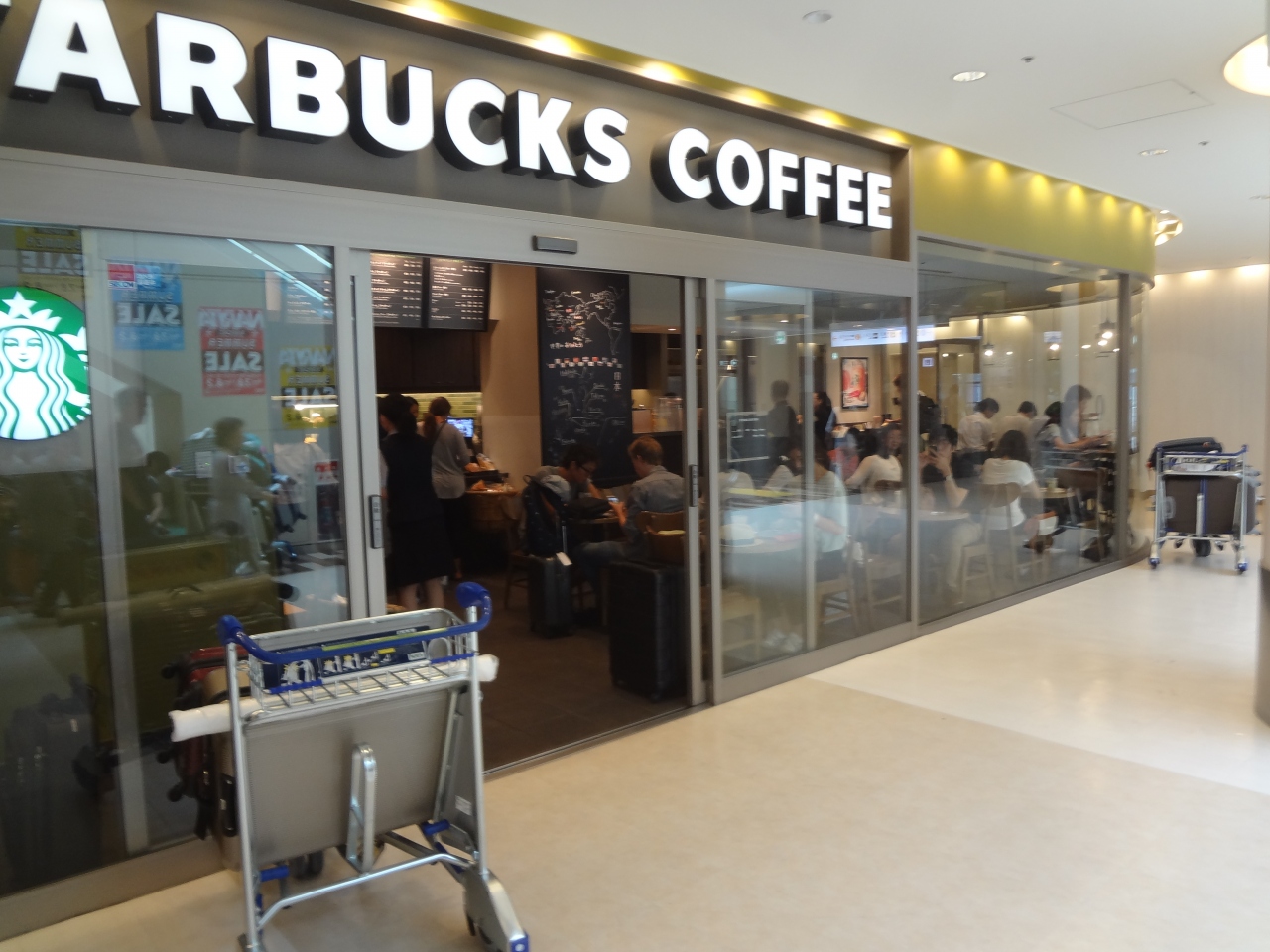 アイスコーヒーのショートを店内でいただきました。値段は302円也。こちらのスタバは店舗形態ですが店内は狭めです。テーブルとの感覚も狭いので窮屈感は否めません。加えて混んでます。ゆったり感でいえばB1にある店舗のほうがよいかもしれません。でも出発ロビー階にあるのでこれから出発するには良い場所です。