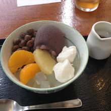 あんみつを注文しました。昔懐かしのクラシックなあんみつが出てきます。甘さも控えめで、休憩を取るのにぴったりでした。