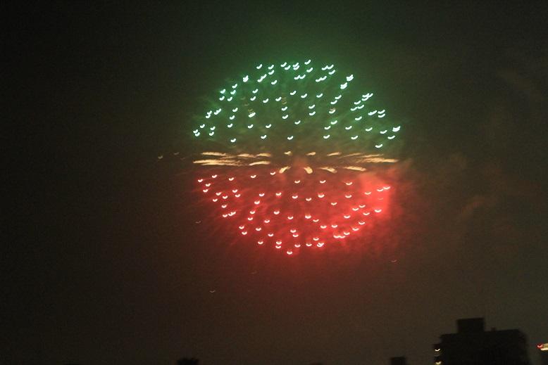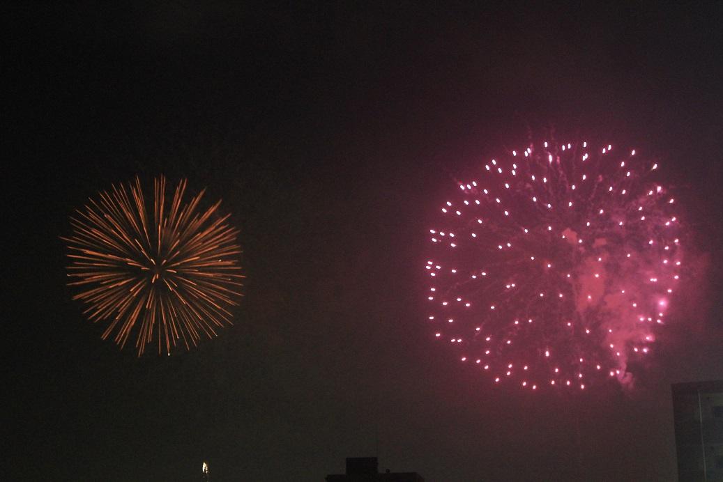 毎年、すごく混雑すると聞いて、住んでるアパートの屋外階段から、1時間30分の花火ショーを観ました・・・ほかの住人のみなさんも集まってきてました。