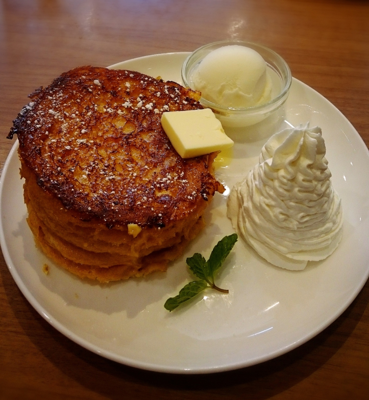 テレビでも話題のお店だったので一度行ってみようと思っていました。日曜日のお昼にもかかわらず3組しか待ってなかった。もう流行り終わりかな?注文したのはプレーンと、プレミアムプレーン。感想は、甘過ぎ!メープルが付いてきましたが更にかけるなんて考えられない。胸焼けしました。食事系のものと半分ずつ食べるのが良いと思います。