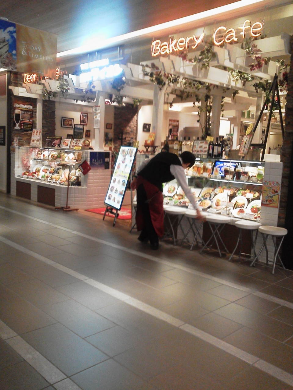 ステラプレイスには以前から入っていたお店ですが,今回,改装しました.以前は個室のように分かれていたのですが,間仕切りの高さが低くなり,また,食品サンプルなども配置が低くなって,外からも店内が見えるようになりました.内装が白を基調としたものになったこともあって,開放的で入りやすくなりました.料理は銀座ライオンのお店なので,安心できます.