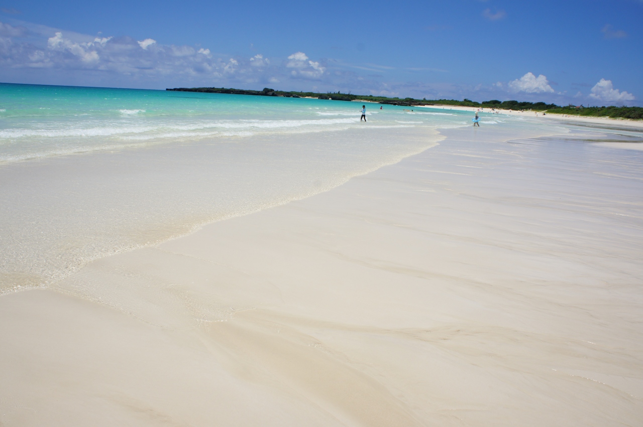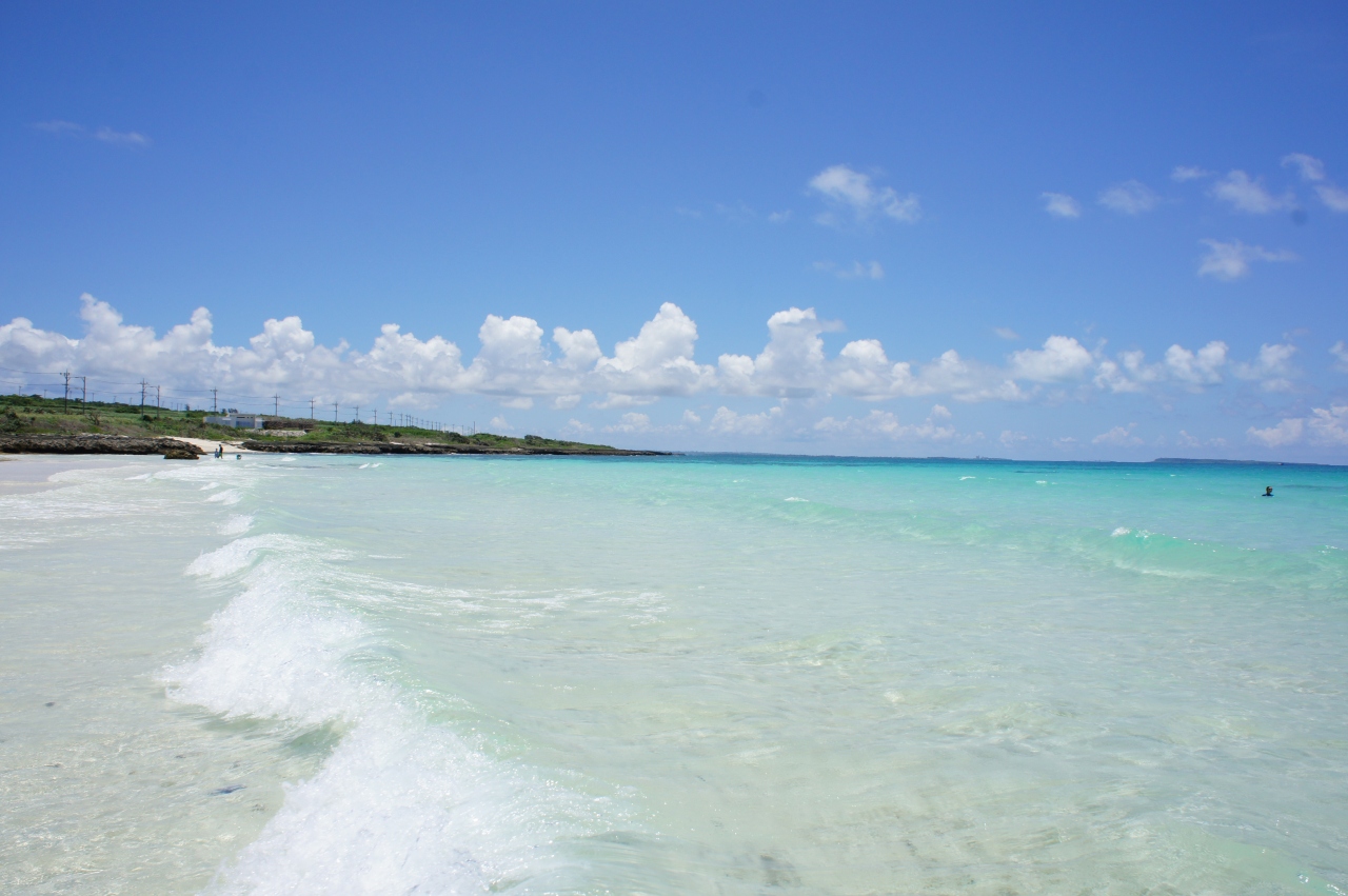 離島や本島北部の海の色と違った、青のグラデーションと白い砂のビーチ。