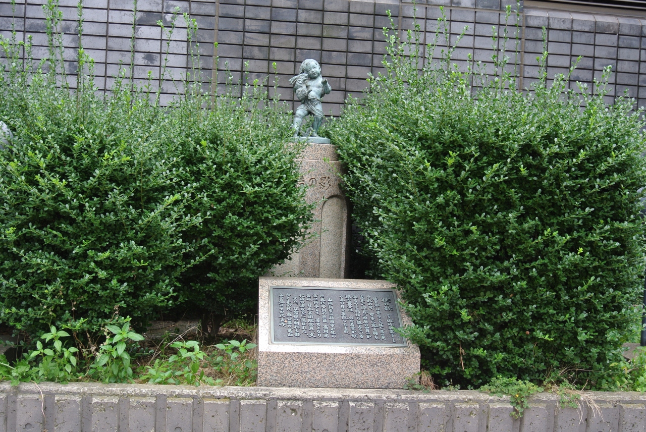 思いのほか、小さなかわいらしい像でした。像の前に説明板が設置されており、桂の影とは昔の言葉で月の光を表すそうで、右手にうさぎを持ち、左手で卯月が来るのを指折り数える童子は春の月を象徴したものだそうです。