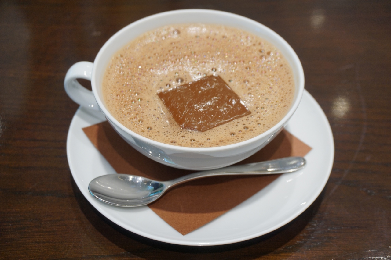 リンツ ショコラ カフェで、ホットチョコレートをいただきました。チョコレートの専門店でいただくとホットチョコレートって本当にうまいですよね。100% Chocolate Cafeで、そのおいしさに触れて病み付きなりそうなんですが、ここのはいかがでしょうか。小さな板チョコが浮かんでいて、なるほどいい感じのアクセントになってますねえ。やっぱりうまいですね。銀座の真ん中だし、けっこう空いてるし、これは価値あるお店だと思います。