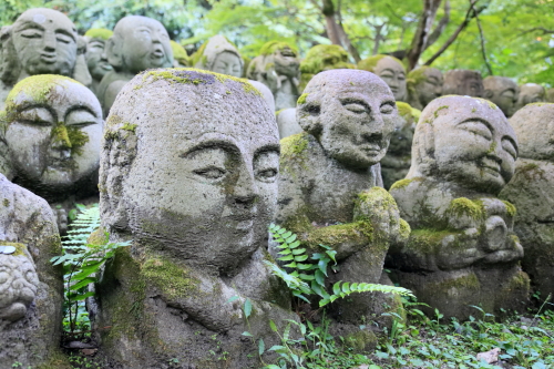 カメラ、漱石の本、テニスラケットとそれぞれ好きなものを持った仏像さんたちが