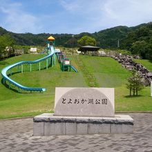 とよおか湖といいますが池ではないのかと?思いますが池と湖の定義はわからないですね。公園になっていて長い滑り台があるのが特徴で子ども達が喜ぶ施設です。